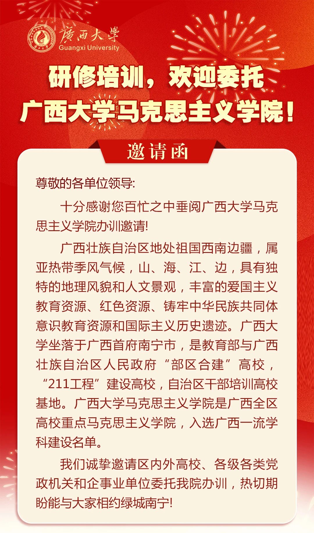 【邀请函】研修培训,欢迎委托广西大学马克思主义学院!