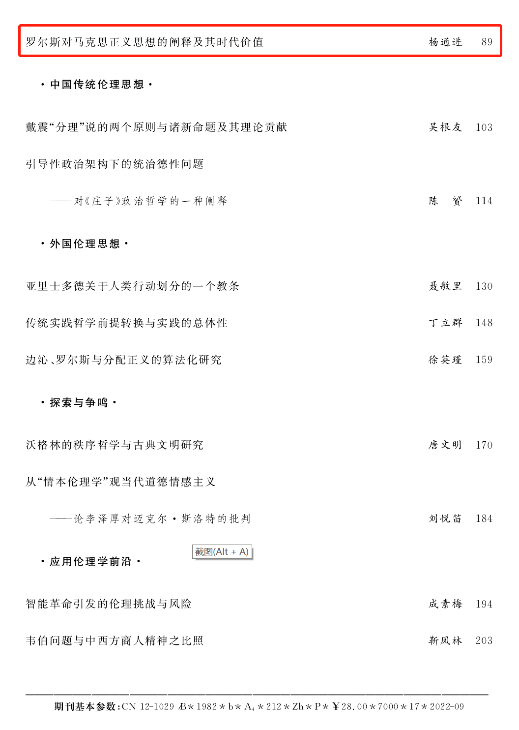 我院杨通进教授在《道德与文明》(2022年第5期)上发表理论文章《罗尔斯对马克思正义思想的阐释及其时代价值》。《道德与文明》是中国伦理学会与天津社会科学院共同主办的伦理学专业理论期刊,创刊于1982年,是国内最早的伦理学专业期刊。期刊致力于追踪伦理学学术前沿信息,重视基础理论研究,以及应用伦理学研究的发展趋势和最新成果,力求全面反映中国特色社会主义建设过程中的伦理道德和精神文明建设等重大社会现实课题。