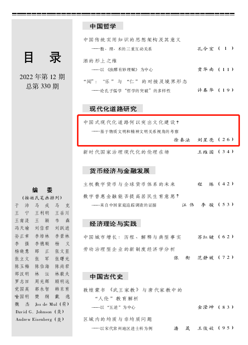 我院徐秦法教授、博士研究生刘星亮在《社会科学战线》(2022年第12期)上发表理论文章《中国式现代化道路何以突出文化建设?——基于物质文明和精神文明关系视角的考察》。