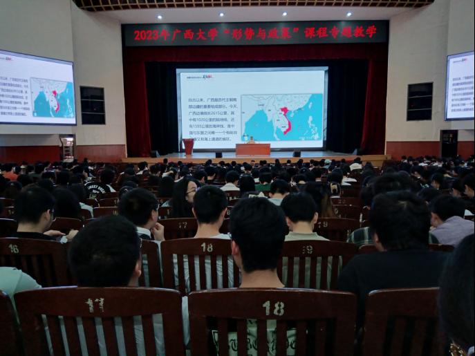 张处长的报告从党的十八大以来,以习近平同志为核心的党中央所提出的“治国必治边”等新时代中国共产党的边疆治理方略的高度,回顾了广西在我国历史上的边疆重要战略地理位置,以及人民骁勇善战的民风等风土民情。随后,张处长结合图片、文字等详实资料,娓娓道来地讲述了明代第一抗倭女将瓦氏夫人,晚清抗法名将冯子材,晚清抗法抗日民族英雄刘永福,晚清抗法名将苏元春,刺杀日本间谍的北海九三事件之策划者——民国将领翁照垣等5人戍边抗击外来侵略的英雄事迹。这些血雨腥风中谱写的历史长歌,引起现场师生的深思。
