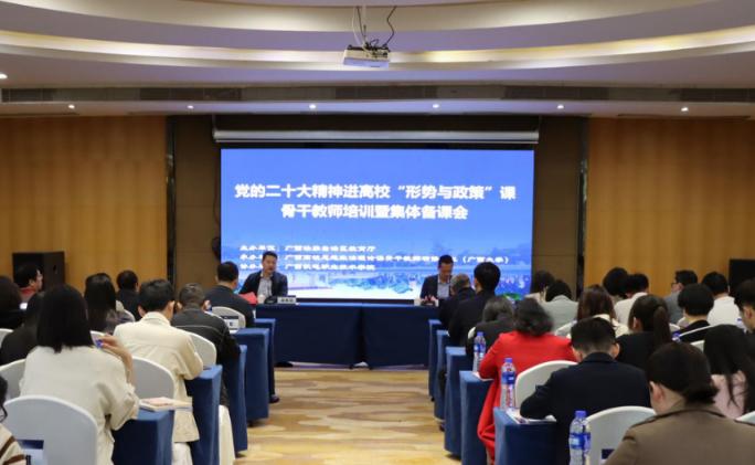 为全面贯彻党的教育方针,进一步加强我区高校形势与政策课教师队伍建设,落实立德树人根本任务,由自治区教育厅主办,广西高校思想政治理论课骨干教师研修基地(广西大学)承办,广西机电职业技术学院协办的党的二十大精神进高校“形势与政策”课骨干教师培训暨集体备课会于4月11日—13日在南宁举办。