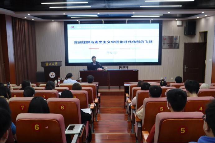 2023年5月12日下午,湘潭大学李佑新教授应邀在我院101报告厅开展主题为《深刻理解马克思主义中国化时代化新的飞跃》的学术讲座。本次讲座由学院梁建新教授主持,全体博士研究生、2021级硕士研究生参加讲座。