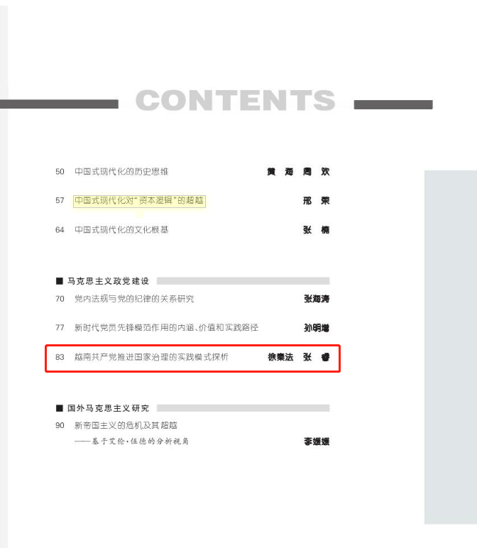 我院教师徐秦法、博士研究生张睿在《理论视野》(2023年第6期)上发表理论文章《越南共产党推进国家治理的实践模式探析》。