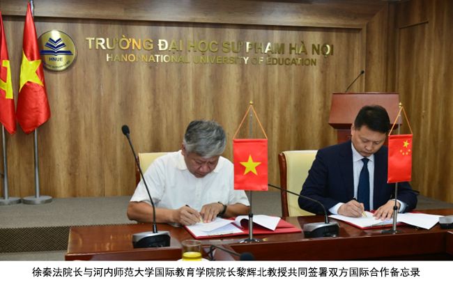 此外,我院教师代表团还访问了越南河内师范大学,与河内师范大学国际教育学院签署了合作备忘录。河内师范大学校长阮文明教授亲临现场并发表讲话,对代表团的到访表示高度重视和热烈欢迎。双方表示今后将在承接全国高校思想政治理论课教师国际实践研修、加强科研合作、联合举办国际学术研讨会、教师互访研学、研究生和本科生联合培养等方面开展合作,进一步促进双方高校教育国际化水平。该校国际教育学院院长黎辉北教授、哲学系主任阮维然博士等出席签字仪式,随后代表团还与哲学系师生代表进行了座谈交流。