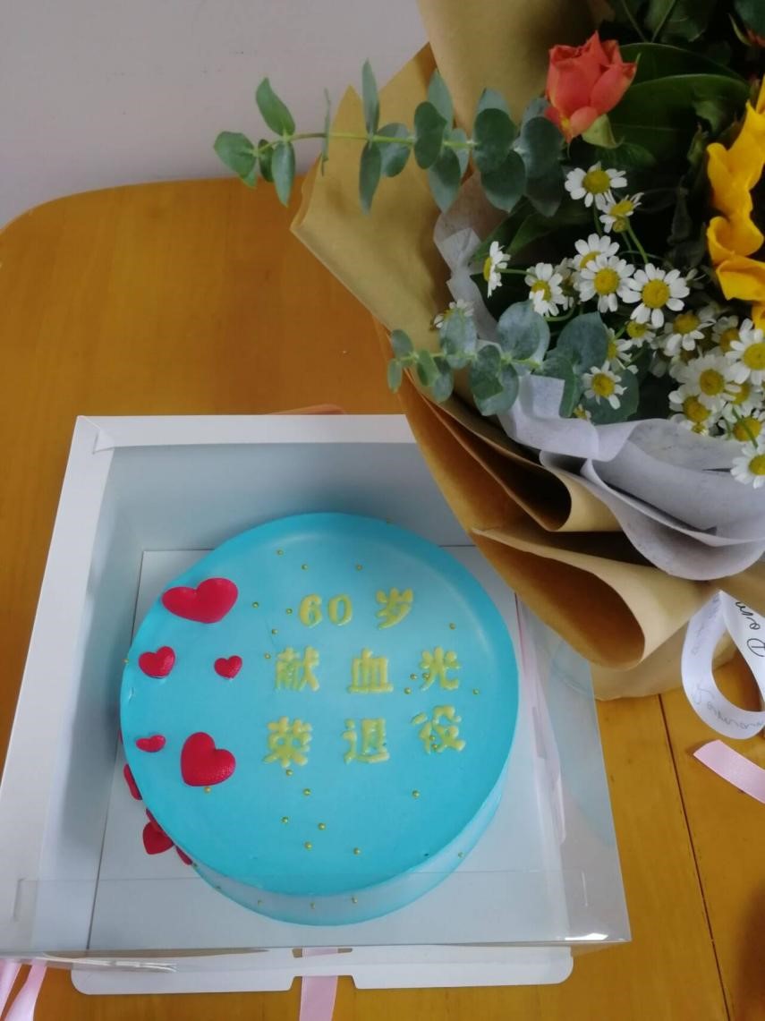 南宁中心血站送上的蛋糕和鲜花