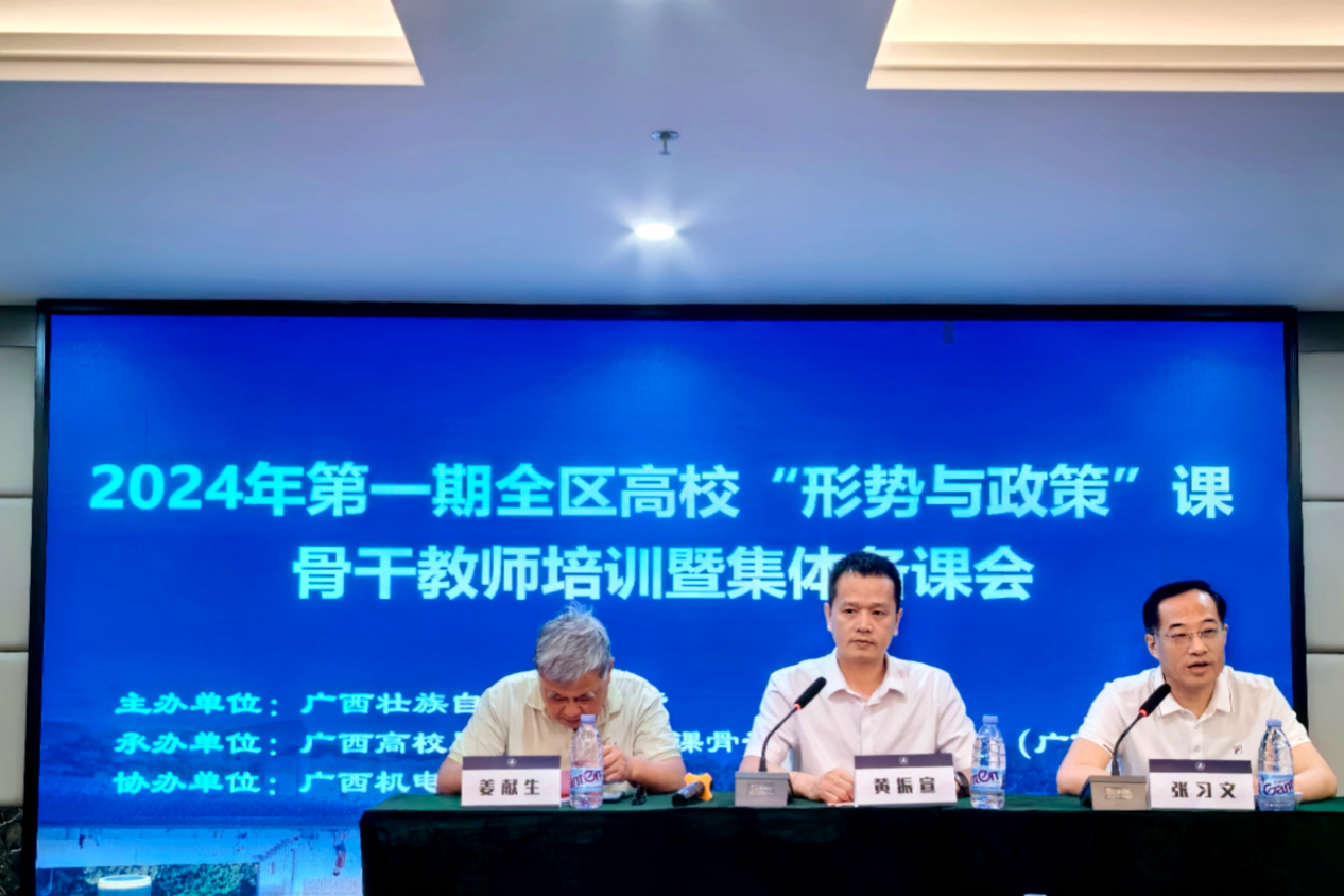 为全面贯彻党的教育方针,进一步加强我区“形势与政策”理论课教师队伍建设,落实立德树人根本任务,由自治区教育厅主办,广西高校思想政治理论课骨干教师研修基地(广西大学)承办,广西机电职业技术学院协办的2024年第一期全区高校“形势与政策”课骨干教师培训暨集体备课会于5月11日—13日在桂林举办。