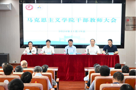 11月19日下午,我院召开干部教师大会。学校党委书记李国忠,校党委常委、副校长于文进,校党委组织部部长王祥高,马克思主义学院班子成员及全体教职工参加会议。会议由校党委常委、副校长于文进主持。
