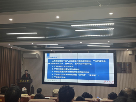 随后,吴达慧对毕业生就业、学生心理普测、防范网络诈骗、“挑战杯”竞赛指导等工作进行了布置,并针对违规饮酒十种情形开展警示教育,要求全体教职工认真贯彻落实中央八项规定及其实施细则精神,严守纪律要求,坚决抵制享乐主义、奢靡之风,崇尚良好师德师风。