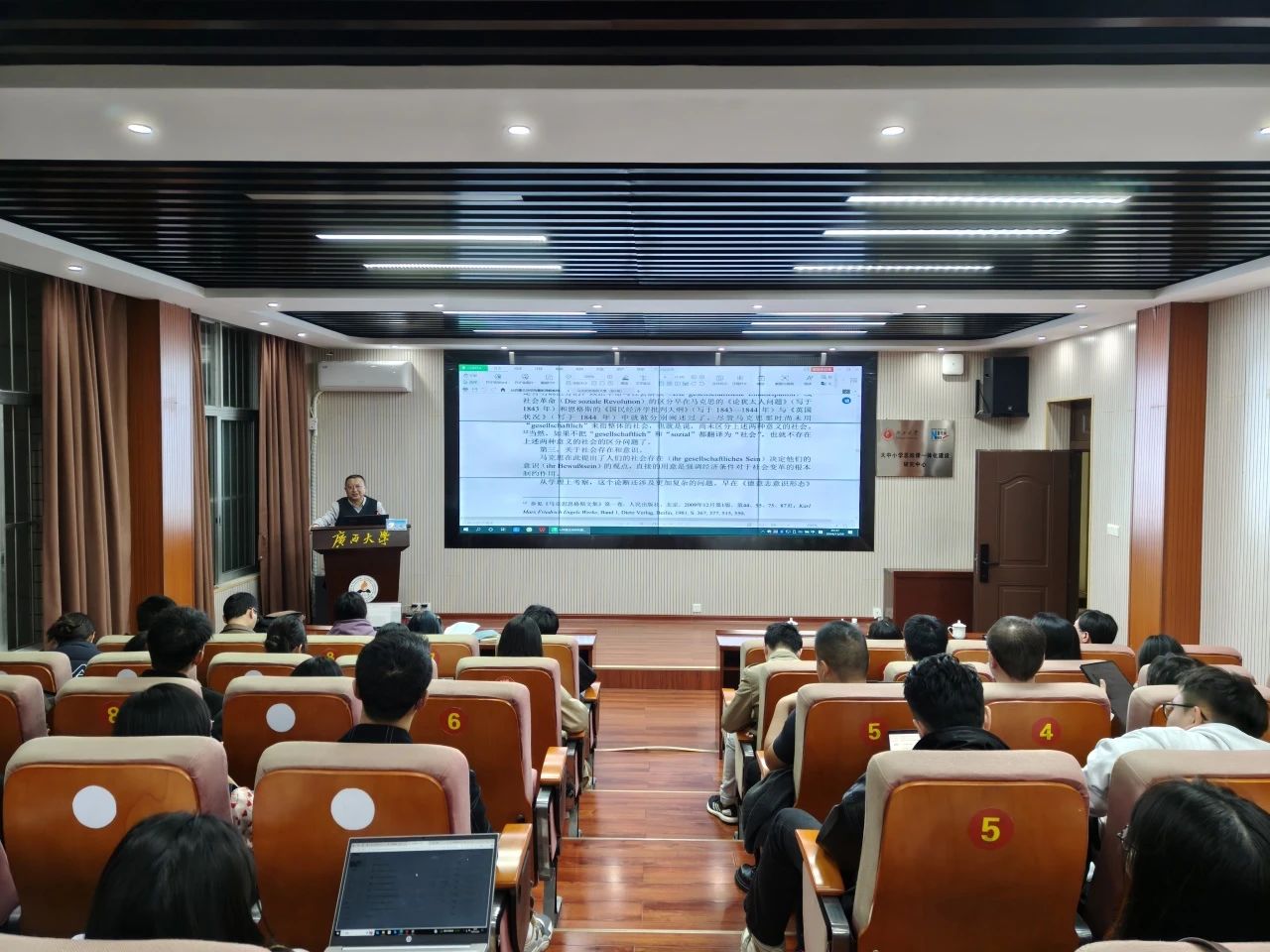 最后,卢永欣教授对徐长福教授应邀来我院进行学术讲座表示诚挚感谢,并就讲座内容进行了总结和阐发。他高度评价了徐长福教授的思想创新性和成果价值,认为其重新挖掘了“社会生活”概念,揭示了以往被忽视的“社会生活”领域,为马克思主义理论研究开辟了崭新视野。同时,他认为徐教授的讲座秉持了整体性思维,把具体问题和思想整体结合起来,把学术性和思想性结合起来,从而开显新的思想观点领域。