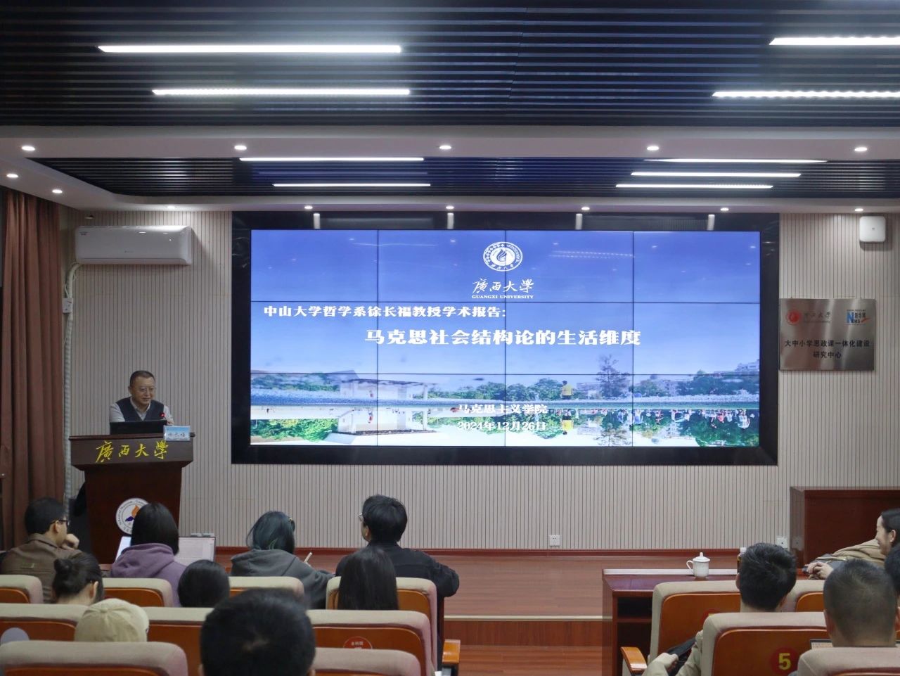 12月26日,中山大学哲学系教授、博士生导师徐长福应邀来我院作了题为《马克思社会结构论的生活维度》的学术讲座。本次讲座由我院黄璇教授主持,学院师生代表近百人到场聆听。