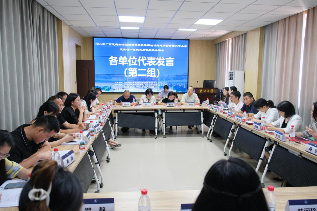 据了解,本次会议由广西大学牵头,邀请了北部湾大学、广西机电职业技术学院、广西农业职业技术大学等6家共建高校,以及君武小学、玉林市玉州区万秀小学、南宁三中、桂平一中、广西艺术学院、南宁市教育局等38家广西大中小学思政课一体化共同体建设单位的60余名教师代表参加。