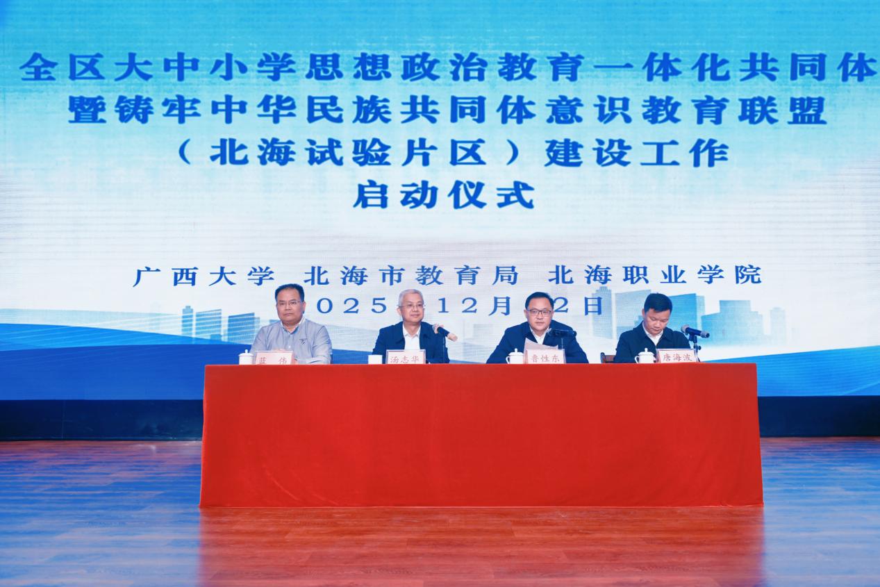 12月12日,全区大中小学思想政治教育一体化共同体暨铸牢中华民族共同体意识教育联盟(北海试验片区)建设工作启动仪式在北海职业学院举行,标志着北海试验片区相关建设工作正式开启。