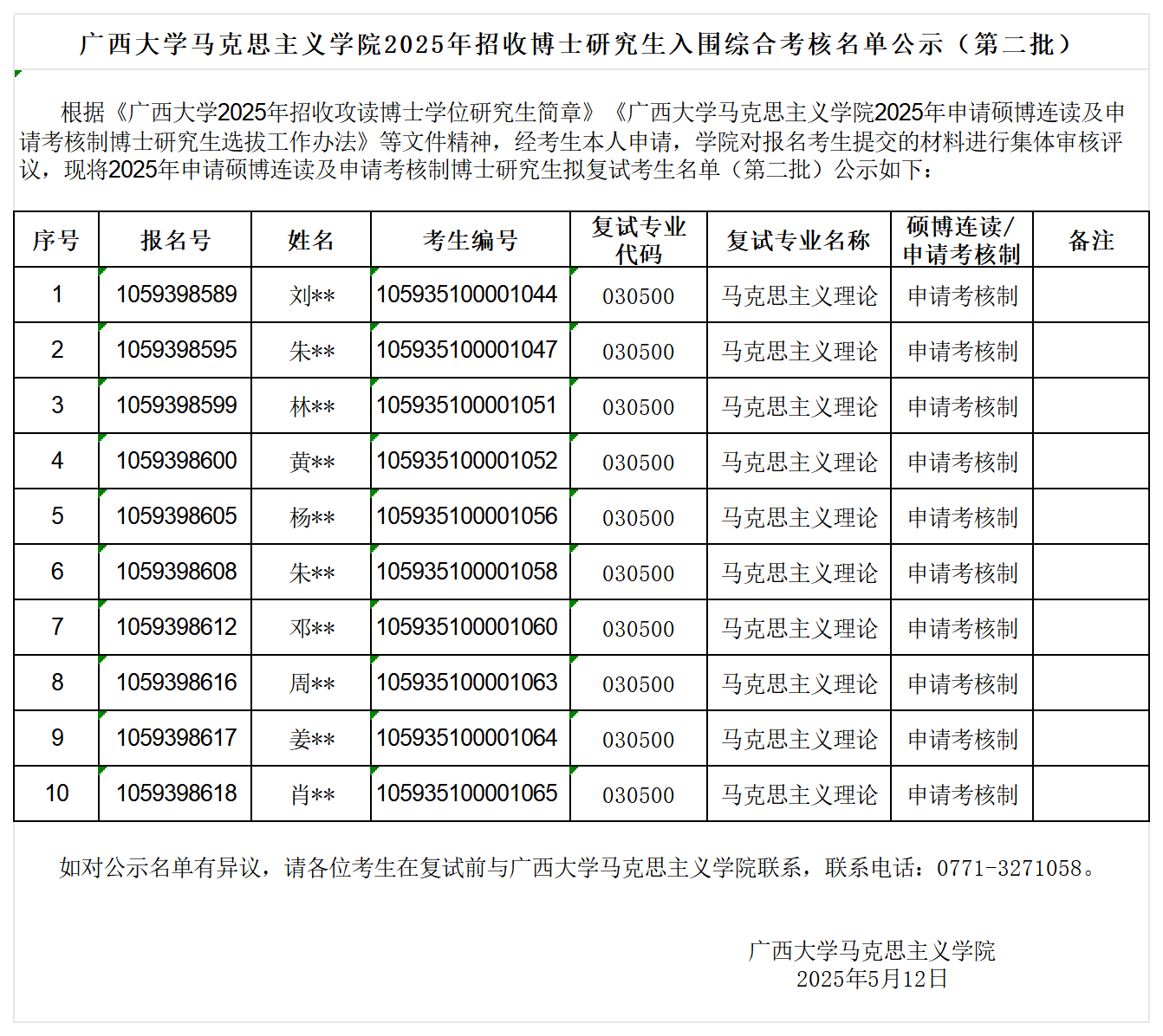 广西大学马克思主义学院2025年招收博士研究生入围综合考核名单公示(第二批)