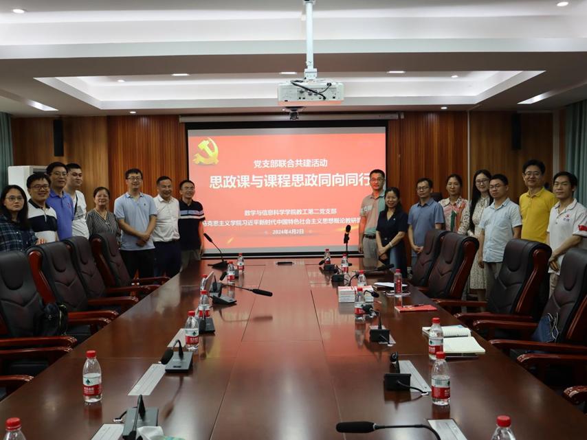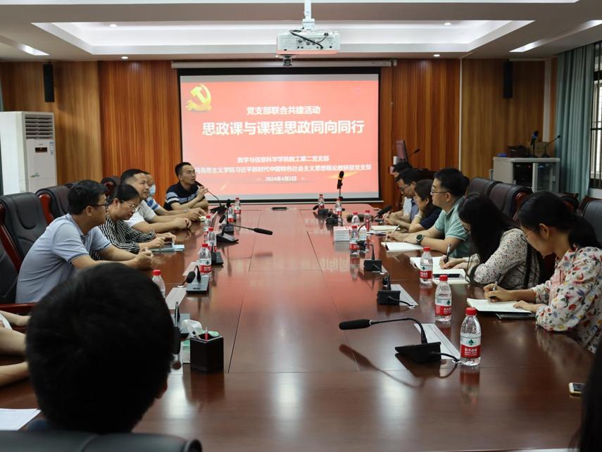 4月2日下午,我院习近平新时代中国特色社会主义思想概论教研部党支部与数学与信息科学学院教工第二党支部开展“思政课与课程思政同向同行”党支部联学共建活动,数学与信息科学学院郭真华院长、石志刚副院长,马克思主义学院陆秀红副院长参加活动。