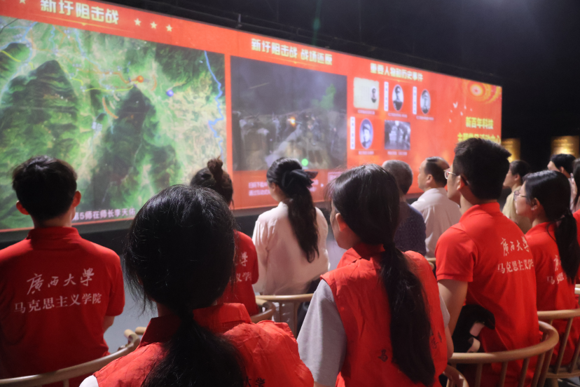 全体党员在学院党委常务副书记吴达慧的带领下重温了入党宣誓仪式,并观看“回望广西这百年”红色短片。活动中心通过锦绣大屏及动态长卷等高科技手段,为党员们展示广西伟大历史事件和英雄先驱的事迹,让党员同志们身临其境地体会了湘江战役的惨烈战况,深刻感受了红军战士勇于战斗、不怕牺牲的斗志和自强不息的民族精神。