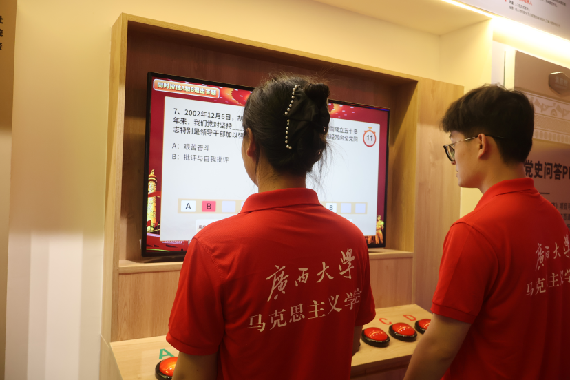为推进党建与业务“双融双促”,提升思政课教师的教育教学水平,开拓创新教学方式方法,同步强化学生理论学习与实践能力,为思政教育注入新的活力,学院党委精心组织了“追寻红色足迹,践行初心使命”主题党日系列活动。南宁市新百年科技艺术中心是此次主题党日系列活动的第二站。