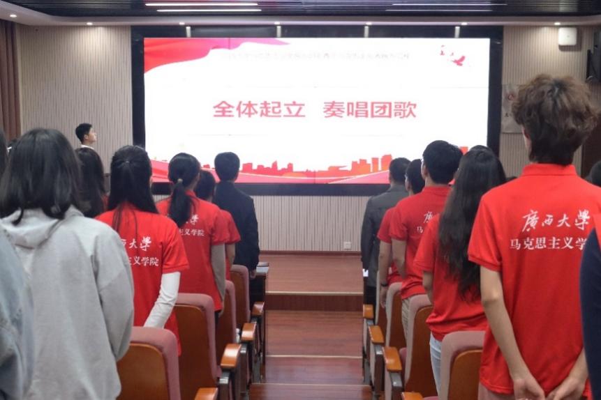 4月10日晚上,我院青年马克思主义者培养工程第四期开班仪式暨第三期结业典礼在学院101报告厅举行。学院党委书记周瑞超老师、党委副书记李海波老师、团委书记虞文茜老师、团委副书记莫凯洋老师出席仪式,学院第三期、第四期青马班全体学员参加活动,仪式由第四期青马班学员赵彦雪主持。