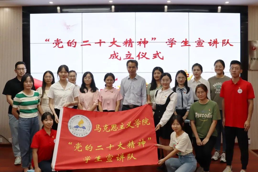 为迎接党的二十大胜利召开,不断把学习和宣传党的二十大精神推向深入,引导广大学生迅速掀起学习贯彻党的二十大精神的热潮,10月14日,我院成立了党的二十大精神学生宣讲队。