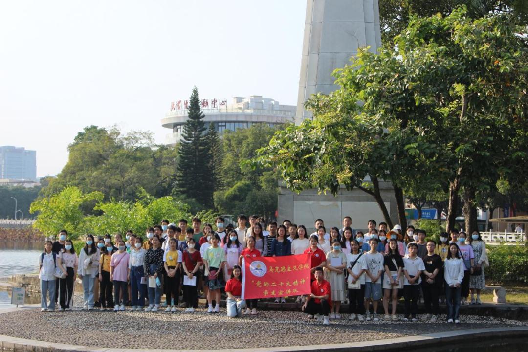 11月13日,受生命科学与技术学院党委研究生第一党支部邀请,我院党的二十大精神学生宣讲队来到碧云湖边的学生爱国民主运动纪念碑,开展了首场户外宣讲活动。宣讲队队长刘庆庆、副队长陆媛媛,主讲人叶冠廷、邹娟参加了本场活动。