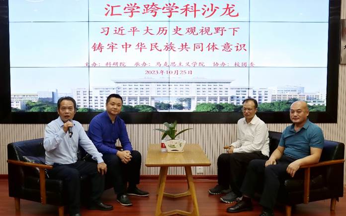 本期沙龙主题为“习近平大历史观视野下铸牢中华民族共同体意识”,由中共广西壮族自治区党委史研究室处长、研究员、马克思主义学院兼职教授刘绍卫老师担任主讲嘉宾,广西大学艺术学院张明学教授、广西大学外国语学院彭程教授、科研院孙冬梅老师作为嘉宾代表到场交流。马克思主义学院副院长梁建新教授主持沙龙。我院众多师生参与了此次沙龙活动。