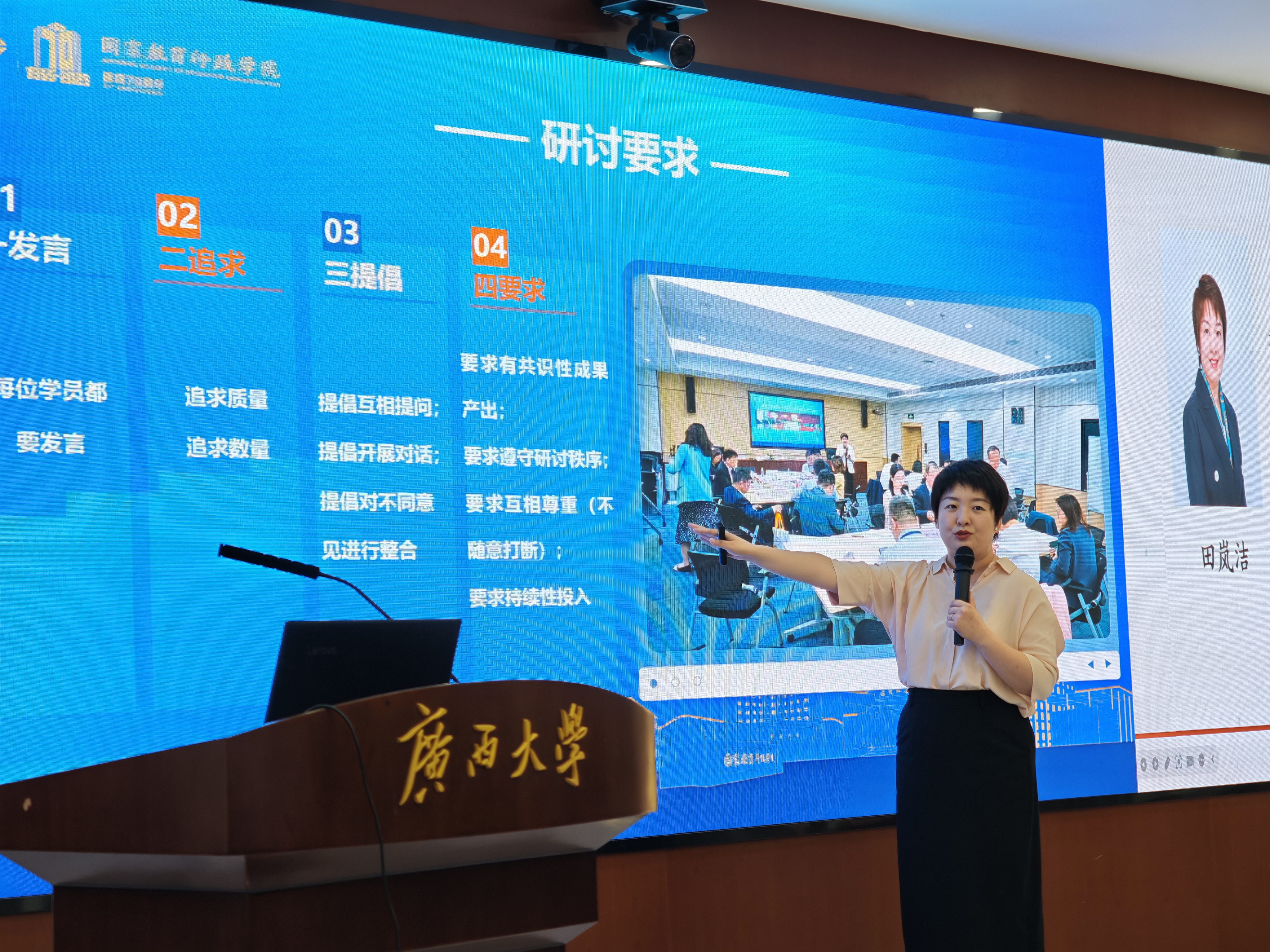 为推进思政课教学改革、切实提升思政课教师教学能力,我院于6月28日邀请国家教育行政学院国际合作处、全国高校思政课教师能力提升研究中心特聘专家田岚洁博士莅临我院,开展为期一天的“结构化研讨”专题培训,学院全体教师参加。