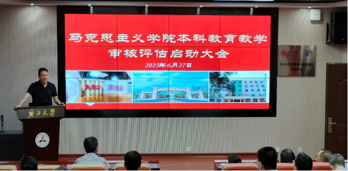 根据广西大学本科教育教学审核评估工作安排,学校将于6月29日开始线上审核评估。为了更好地迎接审核评估工作,我院于6月27日下午14:30在101报告厅召开了审核评估工作启动大会。会议由院长徐秦法教授主持,全体教师参会。