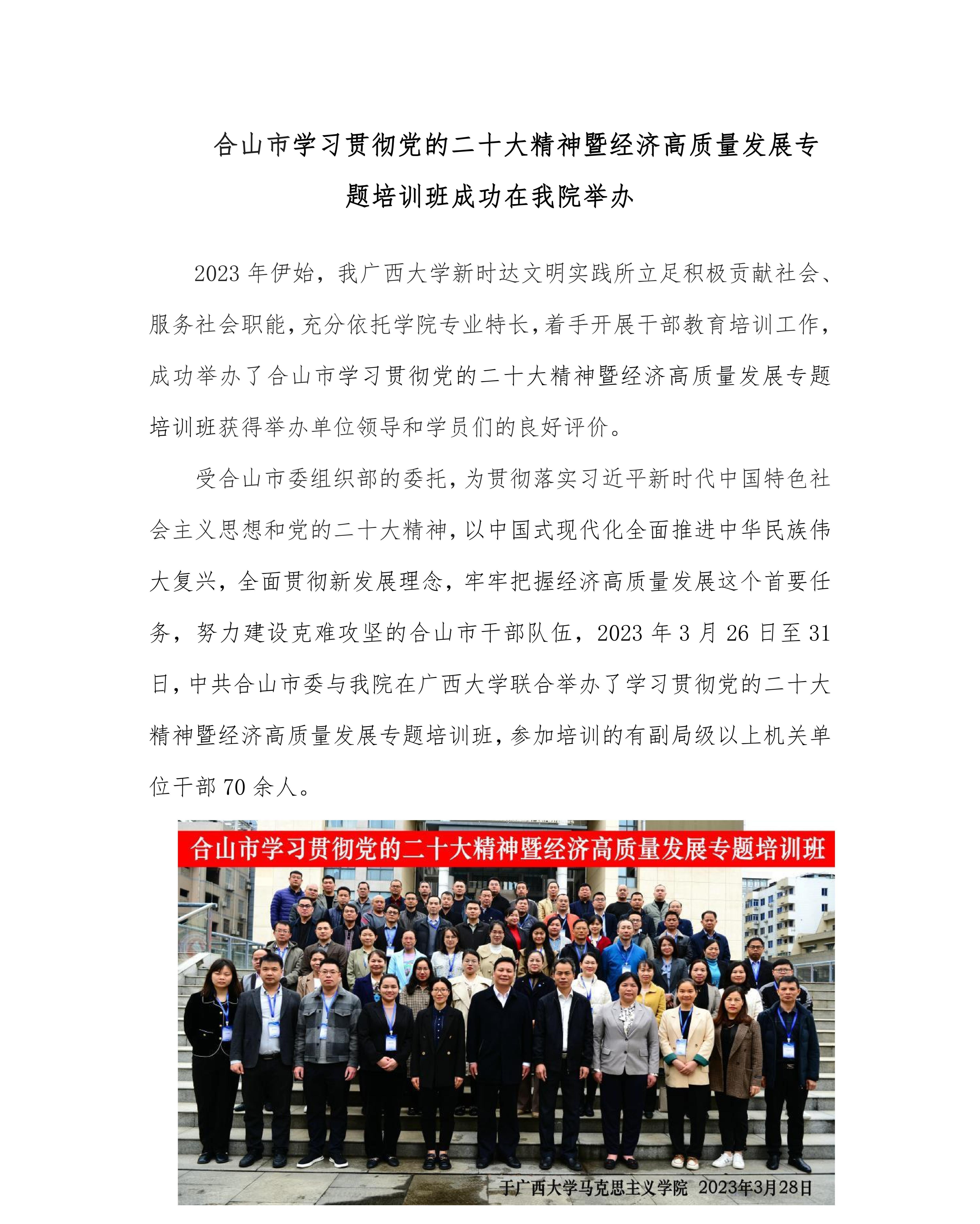 合山市学习贯彻党的二十大精神暨经济高质量发展专题培训班成功在我院举办