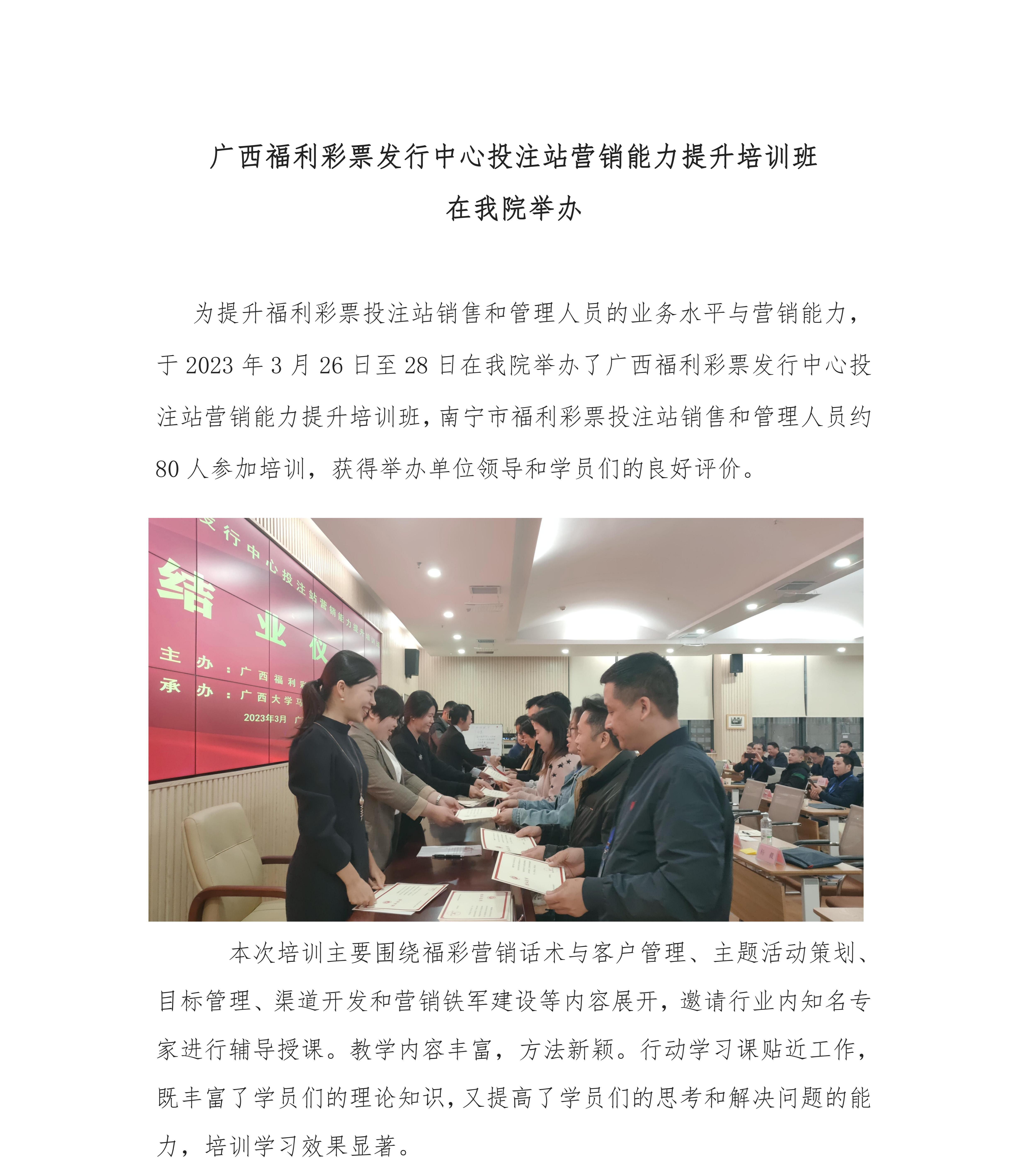 广西福利彩票发行中心投注站营销能力提升培训班成功在我院举办
